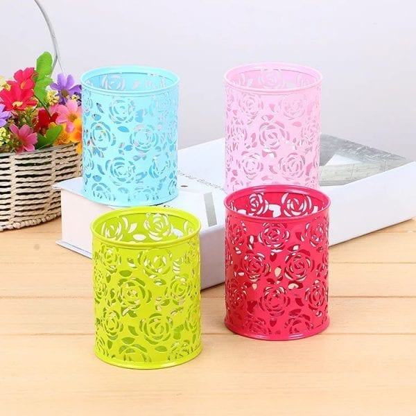 Ống cắm bút sắt hoa tròn màu sắc